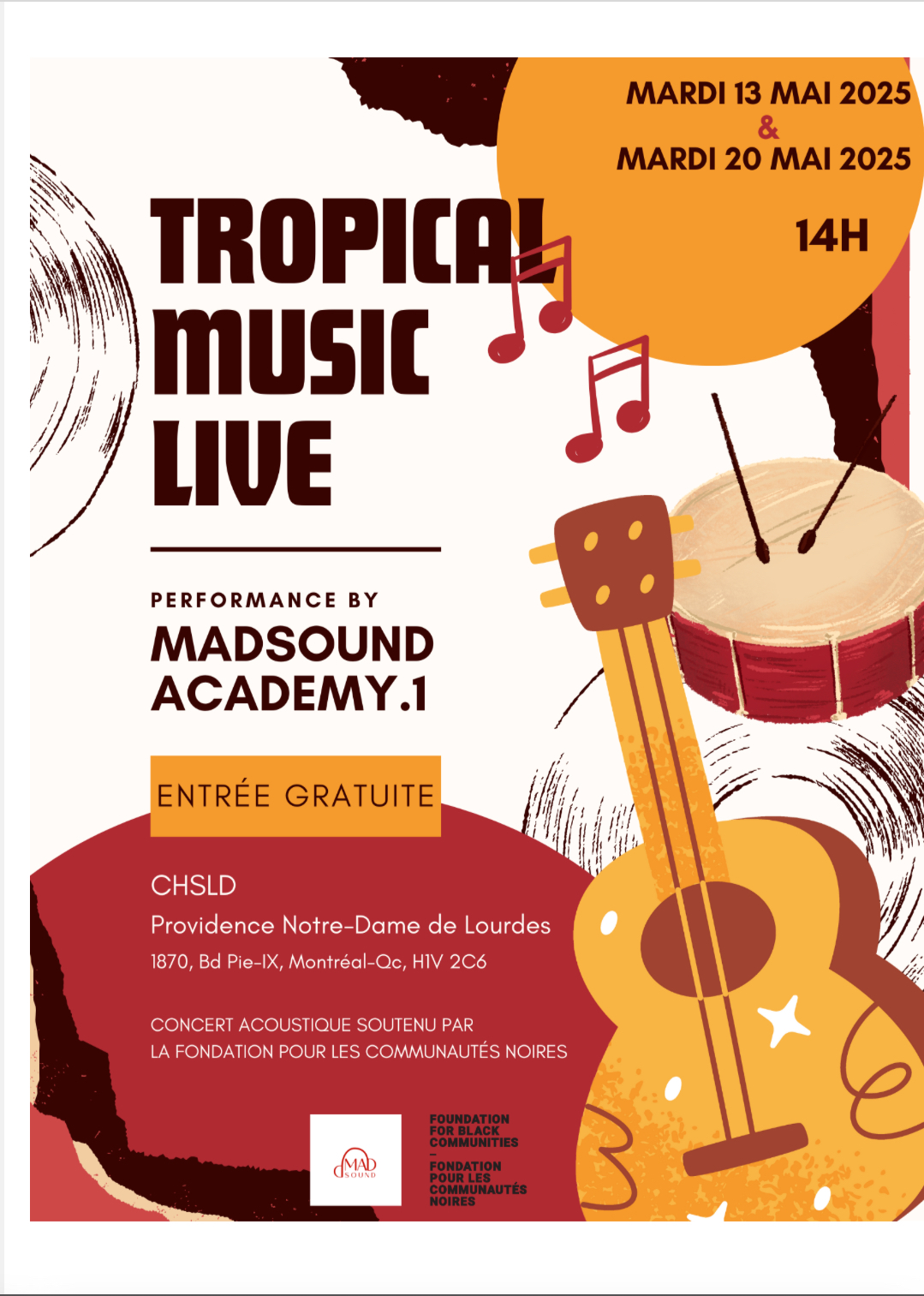 Les animations musicales en CHSLD de Madsound Academy sont conçues pour créer des moments d'échange authentiques entre les artistes afro-descendants et un public québécois difficilement accessible (aînés, malades, etc.) dans des cadres intimistes, chaleureux et inclusifs.